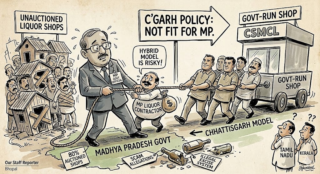 A senior department official who studied the model told Free Press that nearly 80% of shops have already been auctioned in Madhya Pradesh. The Chhattisgarh policy is targeted to run all shops in a total manner. Hence, a hybrid model is not possible. If implemented, the government will run the remaining shops and compete with its own contractors. In such a scenario, either the contractors or the government would cause losses to each other.
