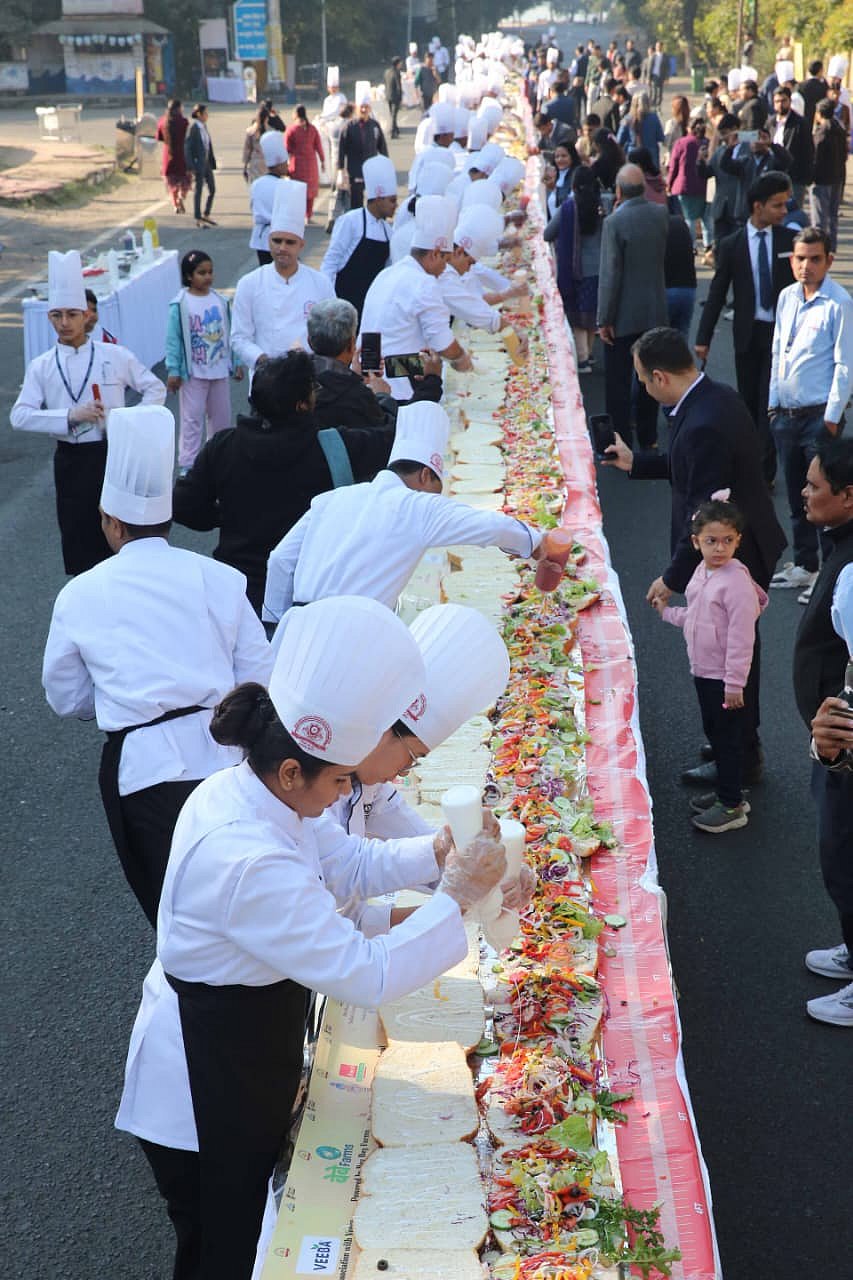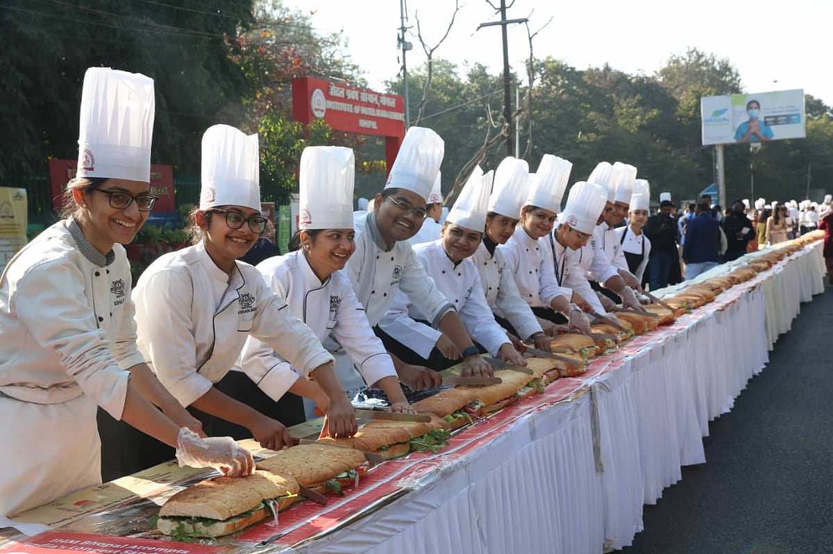 Bhopal (Madhya Pradesh): Bhopal IHM (Institute of Hotel Management) created history on Sunday by preparing a sandwich that was 269.9 feet long and approximately 8 inches wide.