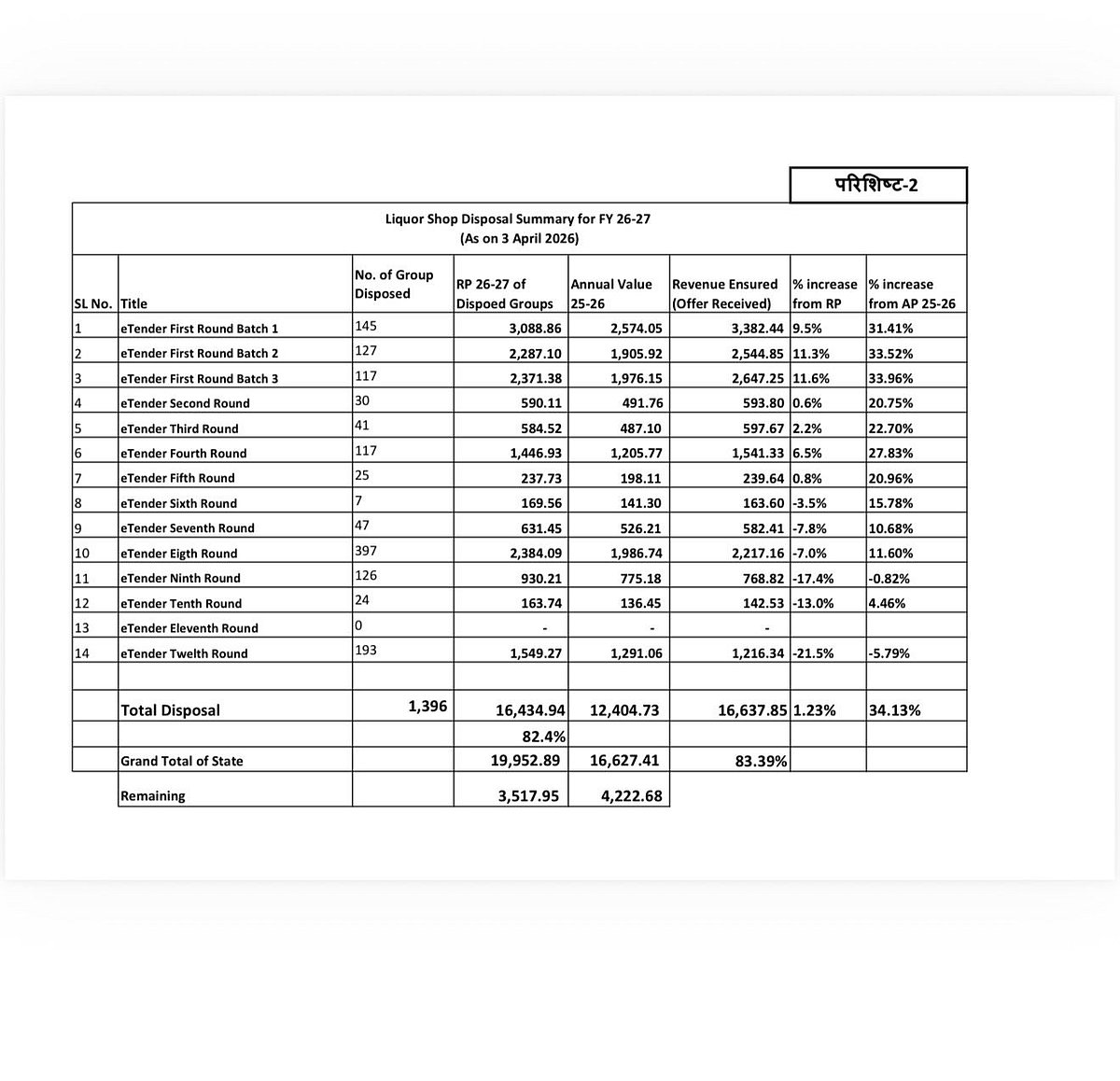 However, the disposal of 454 liquor shops is still pending. Offers received for these shops have been kept on hold as they were below 30% of the reserved price.