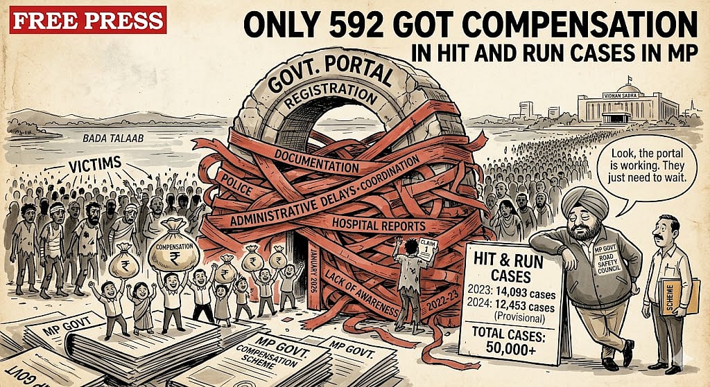 Bhopal (Madhya Pradesh): Hit-and-run cases in Madhya Pradesh are on the rise but compensation meant for victims continues to reach only a fraction of those affected. Thousands of victims or their families have registered claims over the years, yet only about half of them have received any financial relief, exposing a gap between policy and implementation.
