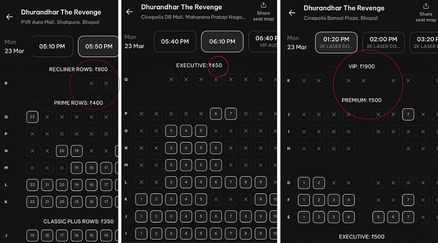 In fact, Dhurandhar-2 tickets for VIP lounge at DM Mall cost Rs 3000 a seat for 11:30pm show on Saturday night.