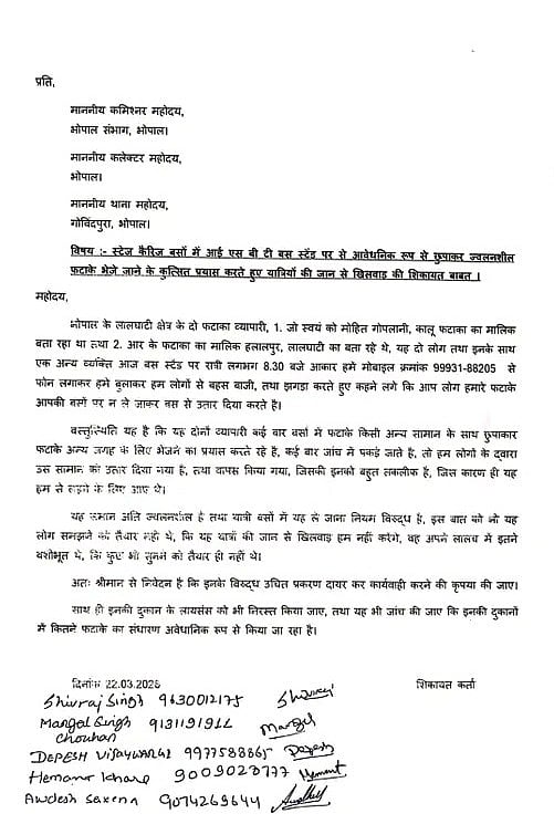 Bhopal (Madhya Pradesh): The dispute over the alleged illegal transportation of firecrackers in Madhya Pradesh’s Bhopal has further escalated on Monday.