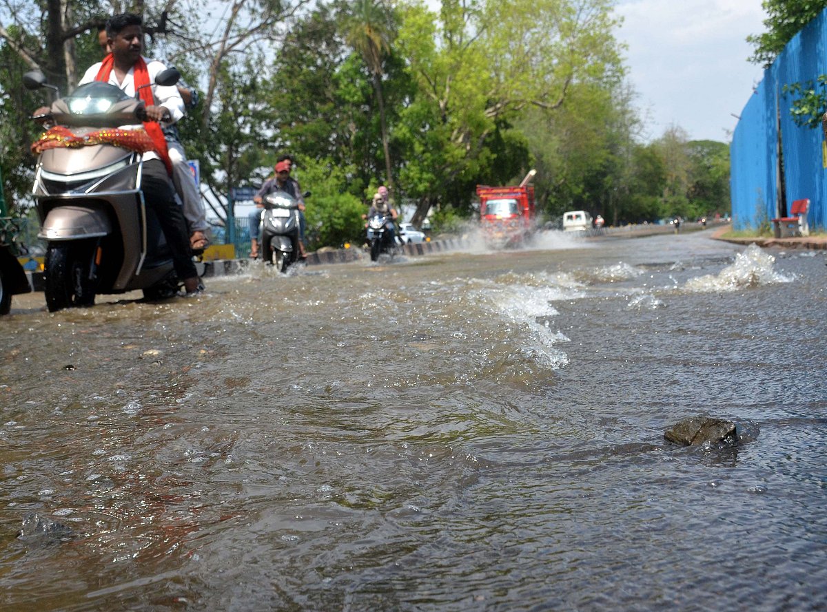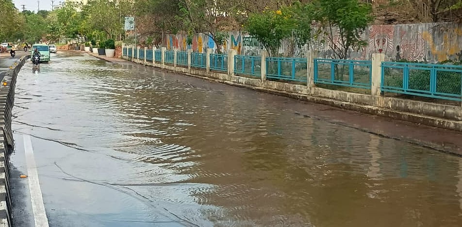 The strong flow of water washed away soil and debris from the roadside, scattering it across the carriageway. The accumulation of stones and gravel made the road extremely slippery. Several two-wheeler riders skidded, while others had narrow escapes.
