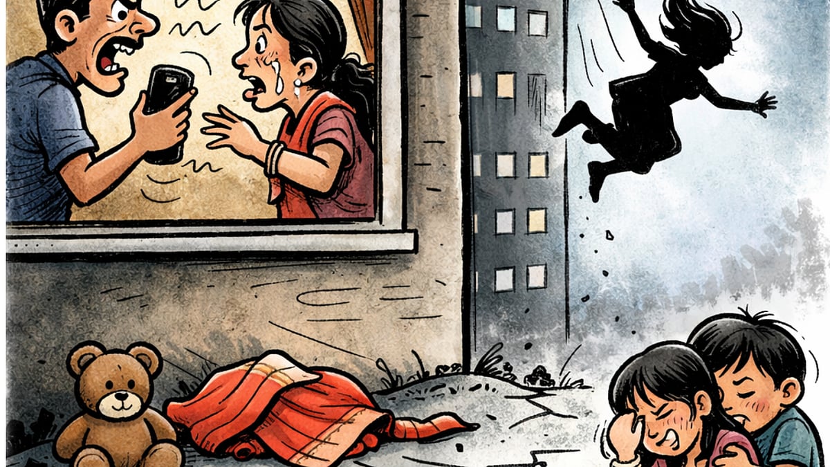 Bhopal (Madhya Pradesh): A woman allegedly jumped to her death from the second floor of her house on Monday morning following a dispute with her husband over using a mobile phone under Kajlikheda police station limits.