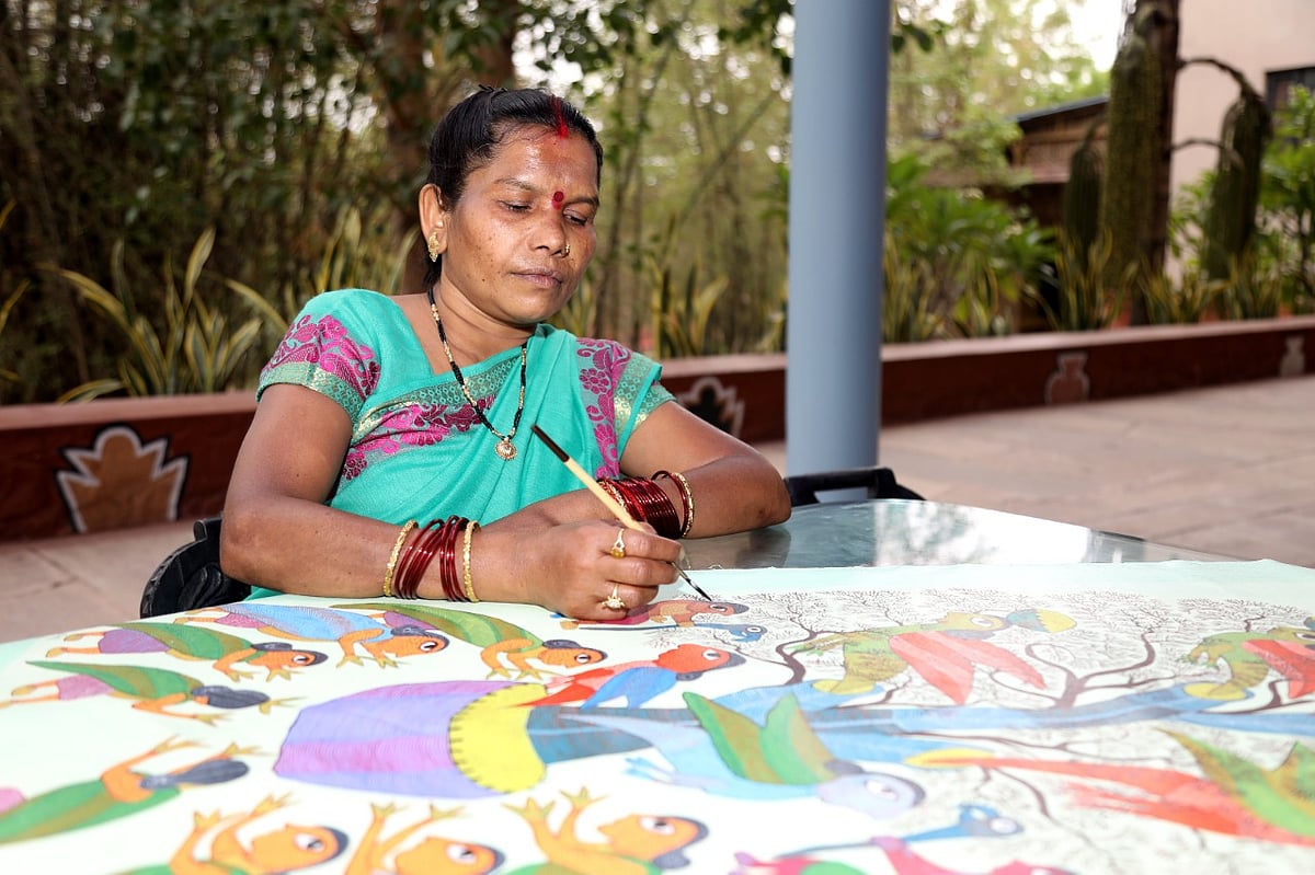 Durga Bai Vyam has depicted the Narmada origin story, the Gond stories of Basin Kanya and Gharsari Mata in the Tribal Museum. She is also working on 'Adiwarta' in Khajuraho and on ‘Narmada’ for Janjaitya Evam Lok Kala Rajya Sangrahalaya under. She has been awarded with various awards including Padma Shri in March this year. The exhibition will remain open for visitors till June 30.