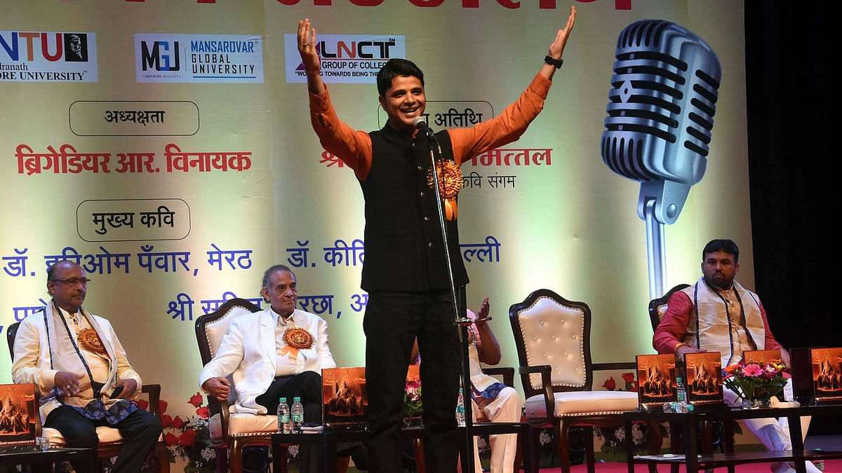 Bhopal (Madhya Pradesh): Poets from across the country presented their compositions at Rashtriya Kavi Sammelan organised at Ravindra Convention Centre in the city on Wednesday.
