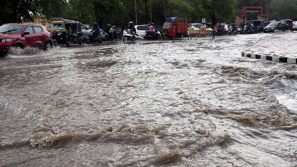 The rainwater also amassed below the statue of Rana Pratap at the Chetak Bridge. That area also witnessed a major traffic bottleneck.
