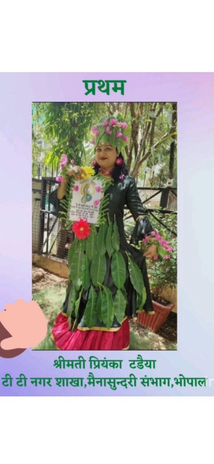 Bhopal (Madhya Pradesh): Priyanka Tadaiya won the first prize in a slogan writing contest, the results of which were declared on Wednesday. The contest was organised by All India Digambar Jain Mahila Parishad on World Environment Day on June 5 this year.