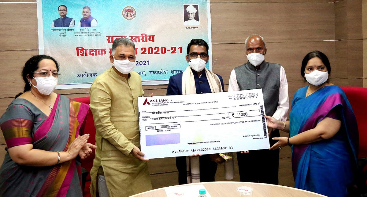 Speaking further, Parmar said this honour is the honour of every teacher and every officer, employee associated with education system in the state. While felicitating teacher of Bhopal district, Vandana Pandey at Mantralaya, Parmar felicitated teachers with shawl, coconut, citation and an honorarium of Rs 25,000. Parmar felicitated Shakti Patel, a secondary school teacher of Government High School in Bichiya development block of Mandla district, who received National Teacher Award. School education minister presented a citation and a check of Rs 11,000 to him.