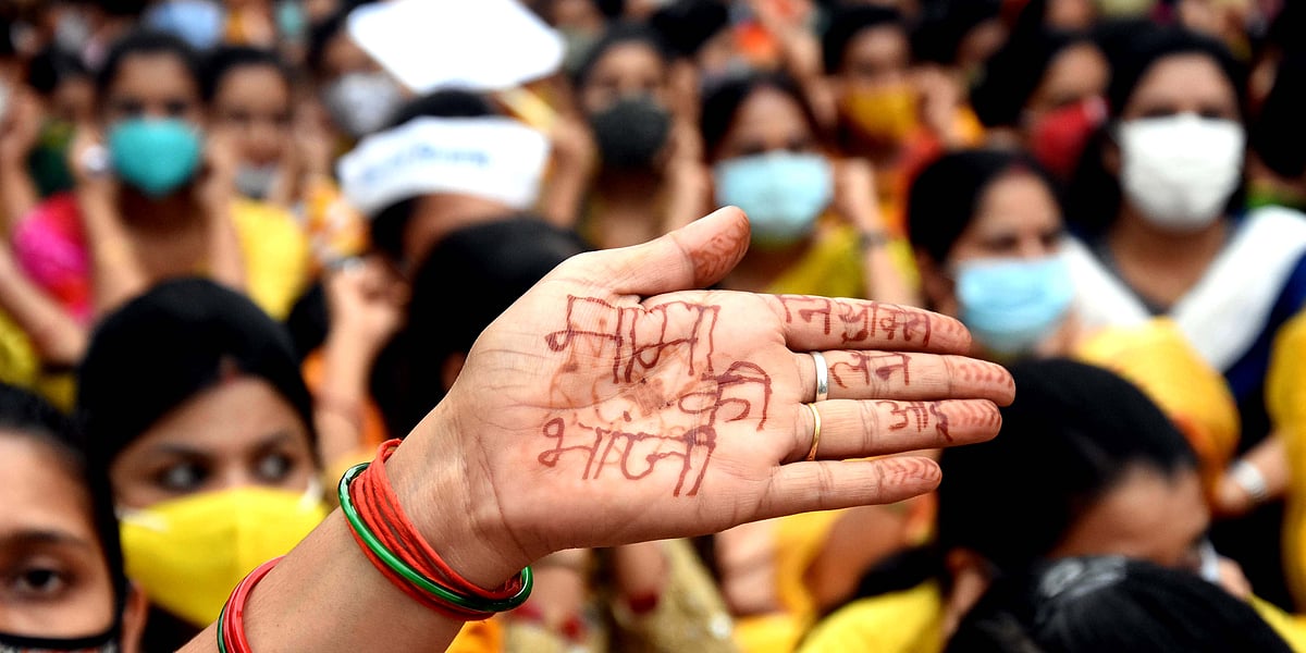 Bhopal: With rakhis in their hands a good number of women selected teachers, who are on an agitation path seeking appointment letters from the school education department, staged a dharna at the state BJP office here on Wednesday.