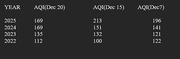 Bhopal (Madhya Pradesh): Air Quality Index (AQI) data for the past four years shows an increasing trend of pollution in Bhopal during December.