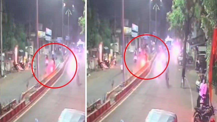 The CCTV video of the incident has surfaced, showing the youths riding the bike at high speed and trying to overtake vehicles passing by. During the attempt, the rider lost control and the bike crashed into the divider and hit a pole, leaving both youths lying on the road, badly injured.