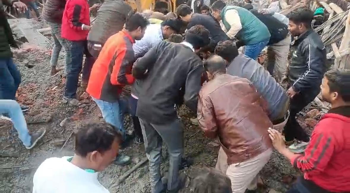 Police rushed to the spot and a rescue team was called. Three labourers have been rescued so far; of which two are seriously injured and one is said to be dead.