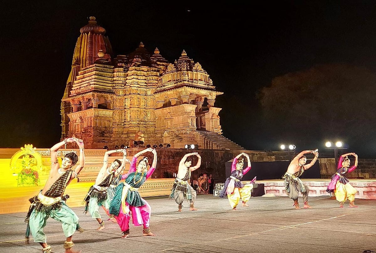 Danseuse Tapsya and her troupe presented their performance at the open theatre of Kandaria Mahadev and Devi Jagdambi temples.