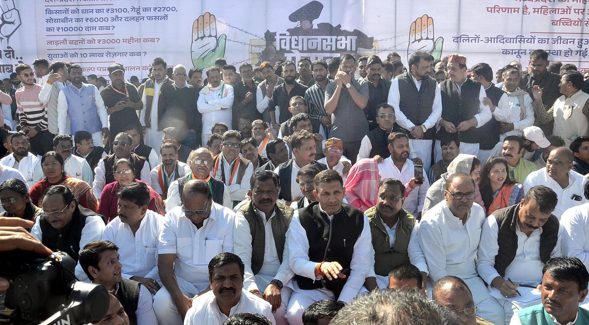 ‘Today, we protested against the state government for failing to fulfil promises made during assembly polls. The government has neither provided proper MSPs for crops, nor Rs 3k monthly to beneficiaries of Ladli Behna Yojana, nor jobs for the state's youth’, Congress state President Jitu Patwari said. ‘Ek saal bemisaal' in loans, crimes, commissions, rapes, unfulfilled promises to farmers and the way the BJP-led state government has pushed the future of the youth into darkness.