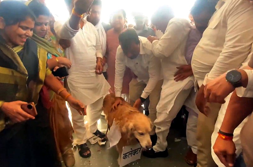 In Sehore, Leader of Opposition Umang Singhar handed a memorandum to a dog after the collector failed to appear to receive it. The video of the incident went viral on social media.