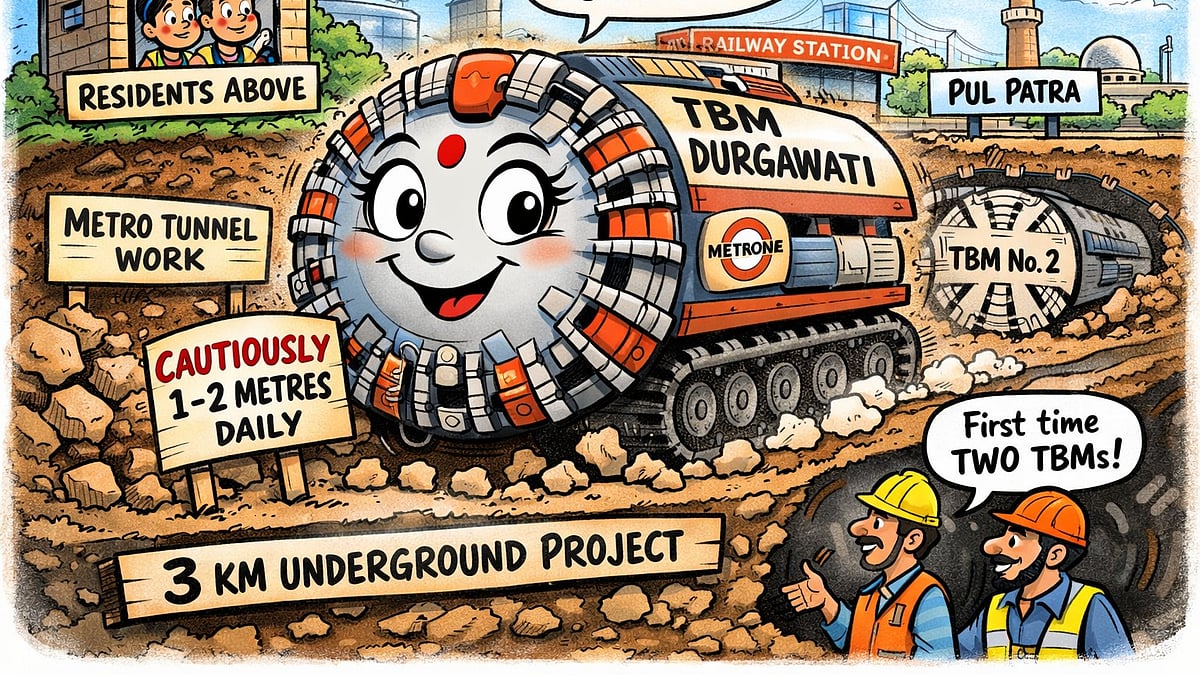 The overall tunnel will be dug from Aishbagh to Sindhi Colony. The technique ensures that work beneath densely populated and sensitive areas is done with precision while taking care of security measures.