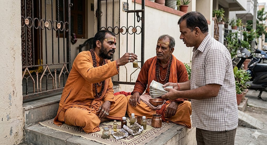 Two cunning fraudsters, claiming to be Tantrics, swindled money from the victim on the pretext of purchasing medicines. The victim was coerced into purchasing Ayurvedic medicines from two different pharmacies under the guise of curing his ailments.
