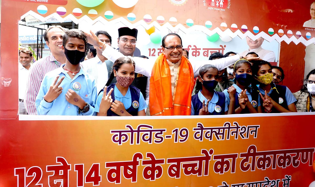 Bhopal(Madhya Pradesh): Children, who were waiting for long to get jabbed against Covid-19, were excited to finally get vaccinated. In the state capital, most of the children came with their parents to get the jab. The children stood patiently in queue to get their jab but as they entered the booth, a few having needle phobia got scared. However, the medical staff and the parents calmed them down. Coming out of the vaccination booth, the children, in all smiles, flashed the sign of victory.