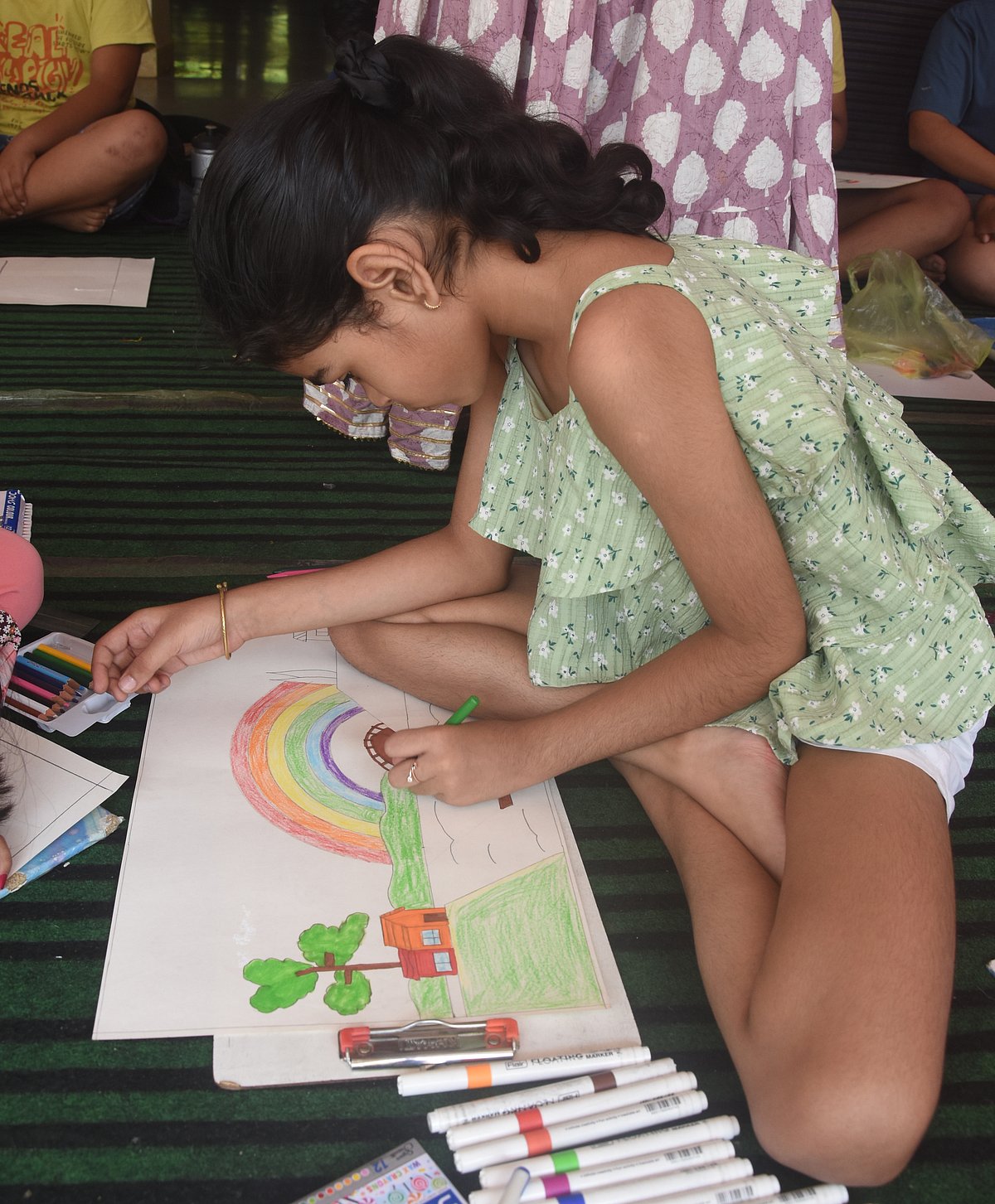 Avinash Tungare, the 80-year-old grandfather of Chhavi, praised the arrangements. He said that the children were very excited to get an opportunity to paint on a subject of their choice and some of them had reached the venue half-an-hour before the scheduled time.