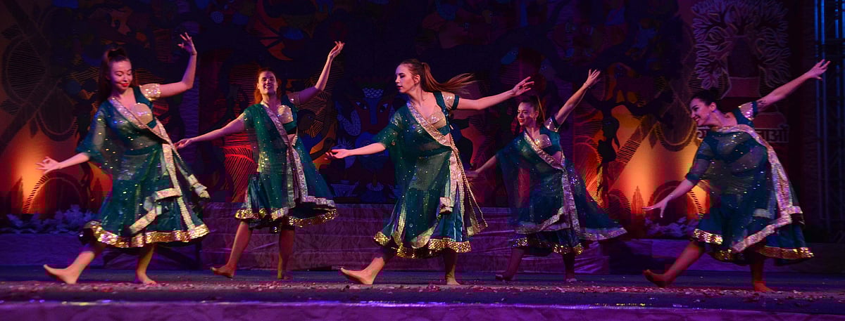 Five female Russian artistes, dressed in Indian traditional attires danced to the tunes of Indian patriotic and folk songs on Wednesday - the fourth-day of five-day event ‘35th Lokrang’ at Ravindra Bhawan.