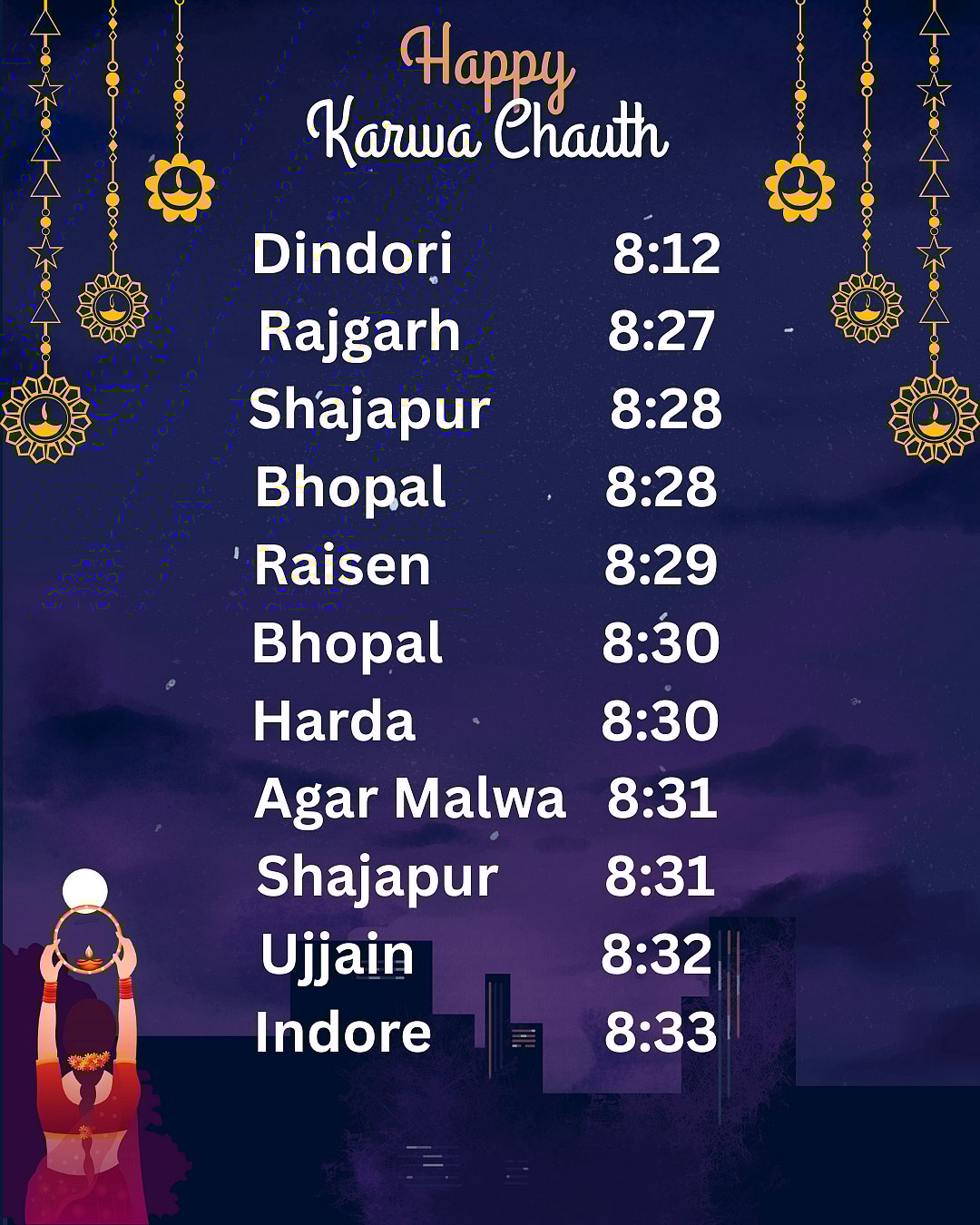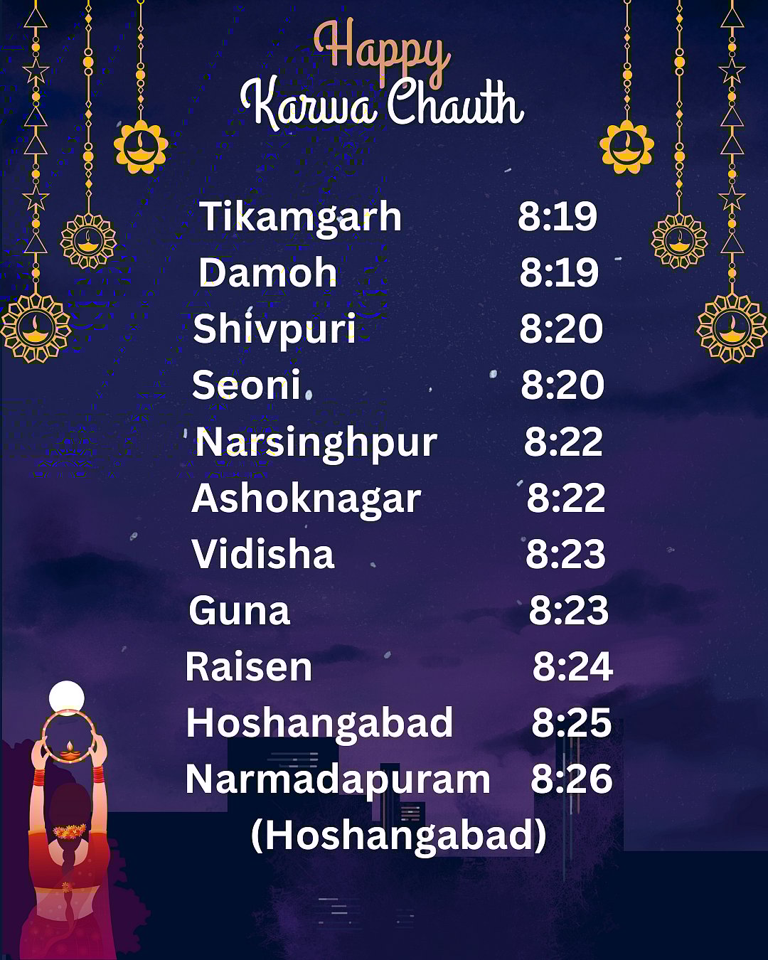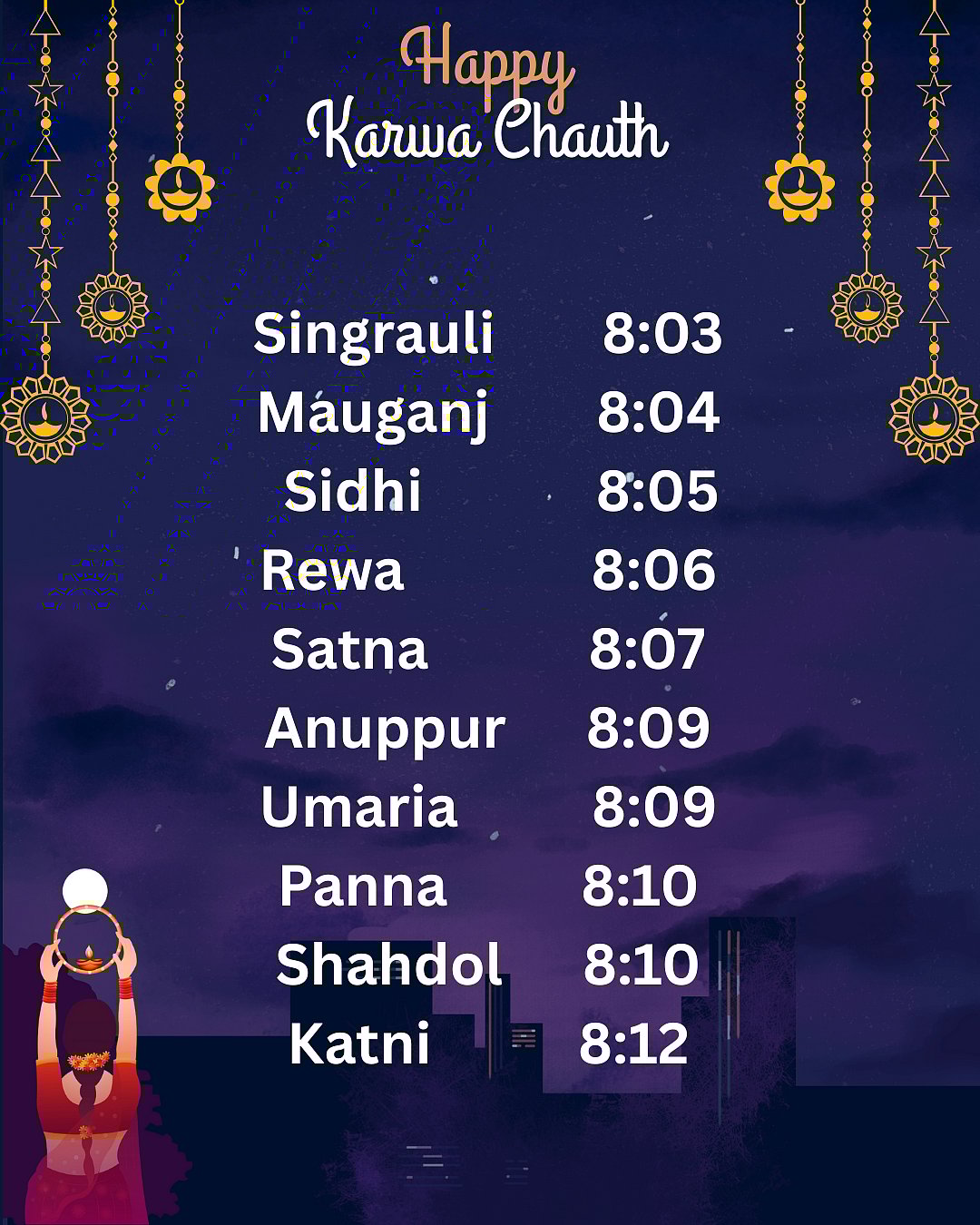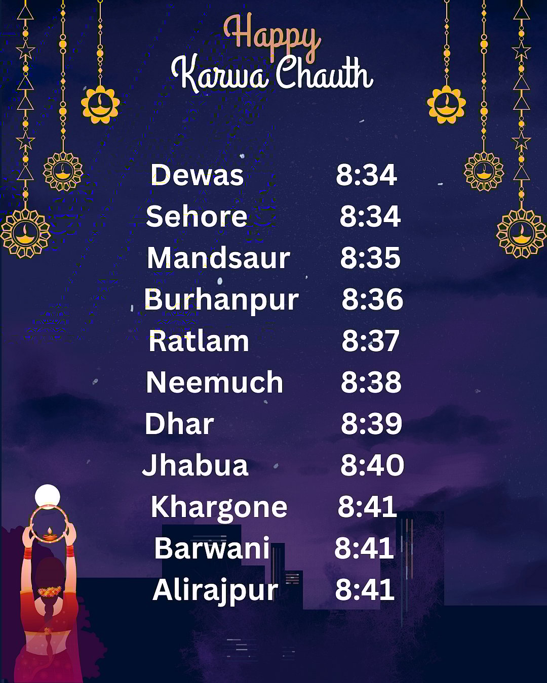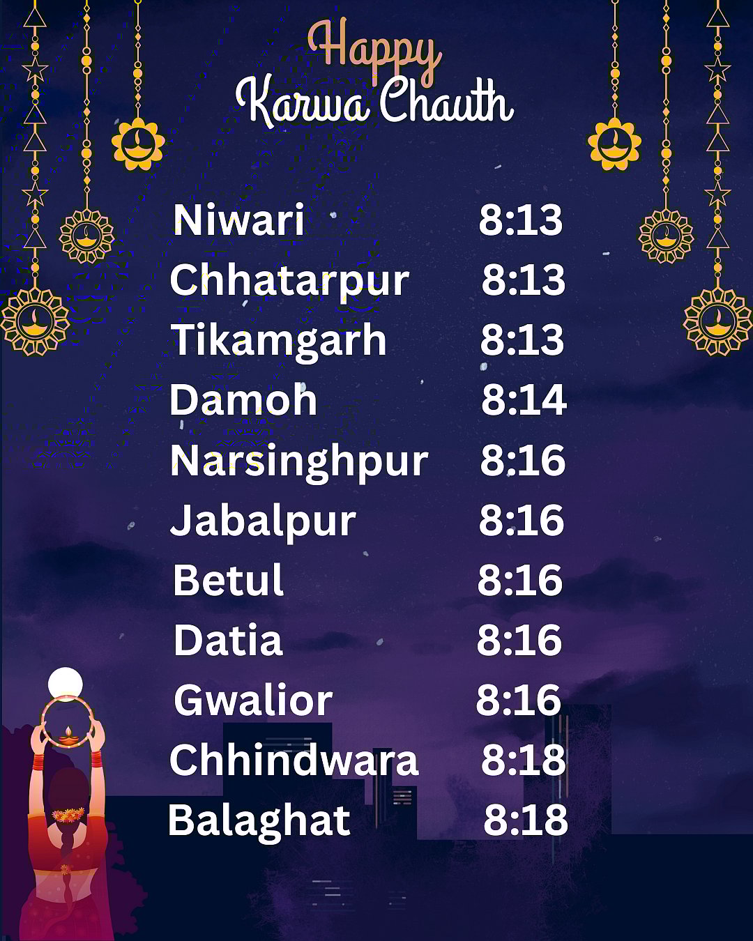In Bhopal, the moon is expected to rise around 8:26 pm , and women will be able to see it clearly by 8:45 pm.CCanva