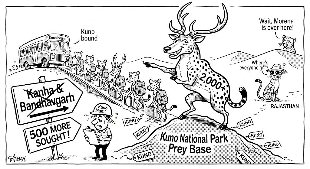 Bhopal (Madhya Pradesh): Over 2,000 spotted deer (cheetal) were translocated to Kuno National Park from Kanha Tiger Reserve, Bandhavgarh Tiger Reserve and other places in the last five years.