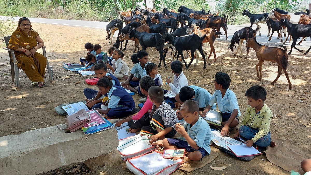 According to a teacher Umashankar Sharma, lack of basic facilities in the school is hampering their studies. Another teacher Meena Pathak said the education department had been informed about the problems, but they did not construct a building. As a result, the classes are held under trees or under the sky, she said. When the issue was put up before Sarpanch Ram Bhajan Prajapati, he said those who studied in this school came from tribal village.