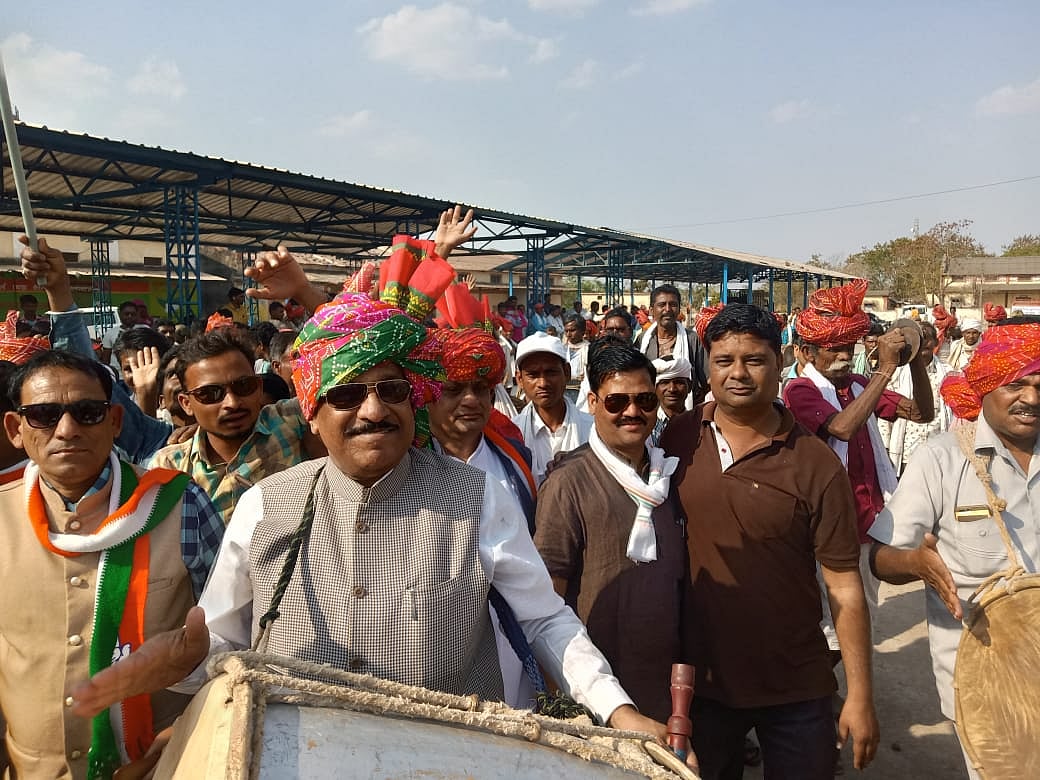 Thandla: Thandla residents welcomed Bhagoriya festival with great zeal and enthusiasm. The local Congress members organised a procession starting from Krishi Upaj Mandi. Several dhol and mandal groups presented folk songs and were rewarded by the leaders. Congress spokesman Vikas Rawat said, “The people of Thandla have a different connection with Bhagoriya festival. This festival enriches and rejuvenates the soul of our culture and traditions. We are proud of these dhol and mandal players who are working so hard to keep our folk music alive.” Former union minister and MLA Kantilal Bhuriya, block Congress president Gendall Damor, youth Congress leaders Jaswant Bhamor and Kalu Singh Nalwaya were present here.
