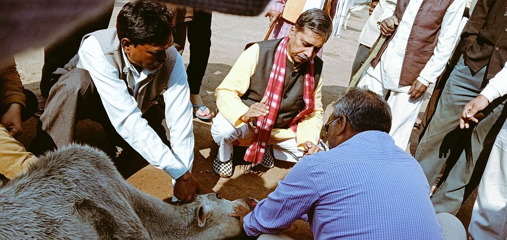 BJP workers gathered at the police station also did slogan shouting attacking the Congress government. They said that cattle was straying on streets and causing accidents on the roads. This leads to fatal accidents injuring the animal and the person alike.
