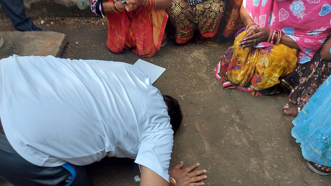 During this, energy minister Pradyuman Singh Tomar sat down with Safai Mitras on the floor and bowed down his head in front of them.