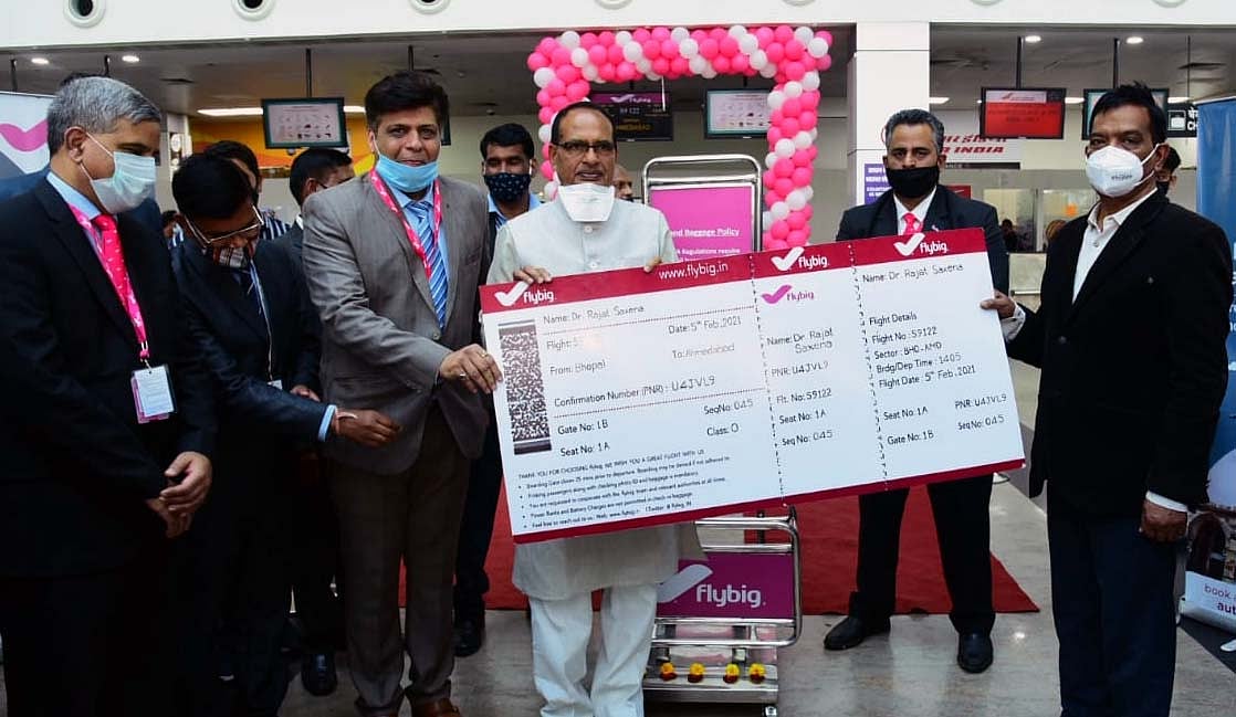 BHOPAL: Fly Big launched a direct flight service between Bhopal and Ahmedabad at Raja Bhoj airport on Friday. It will be available on Monday, Wednesday and Friday from Bhopal to Ahmedabad. Chief Minister Shivraj Singh Chouhan formally inaugurated the air service after lighting the lamp. He also unveiled the first air ticket.