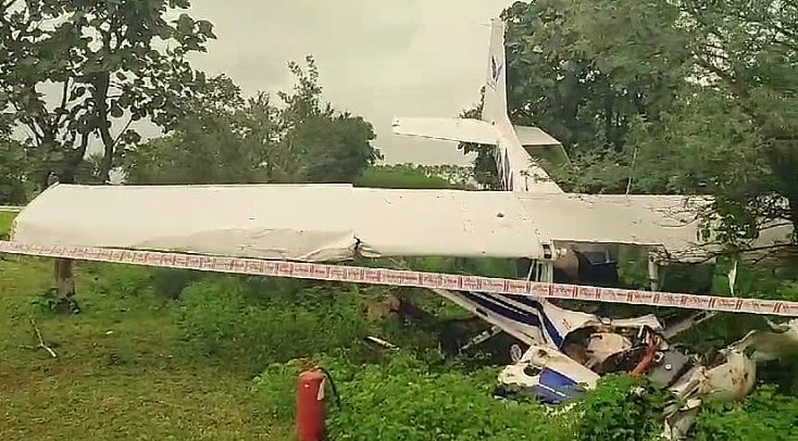 Guna (Madhya Pradesh): A two-seater aircraft, model 152, crashed at the Guna airstrip on Sunday during a test flight. The incident occurred around 1 Pm when the aircraft took off for the test flight carrying two pilots. After flying for approximately 40 minutes, the aircraft crashed within the premises of the airstrip.