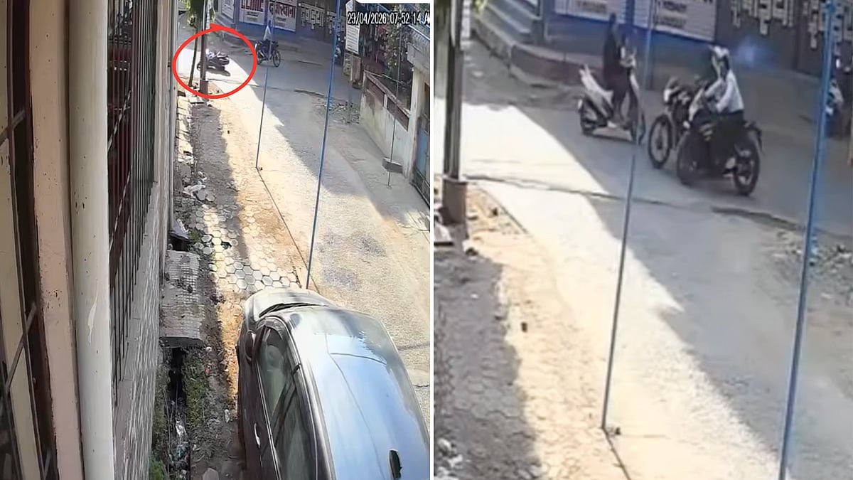 The entire incident was captured on CCTV cameras. Police are scanning the footage, which shows two suspects with covered faces on a bike.