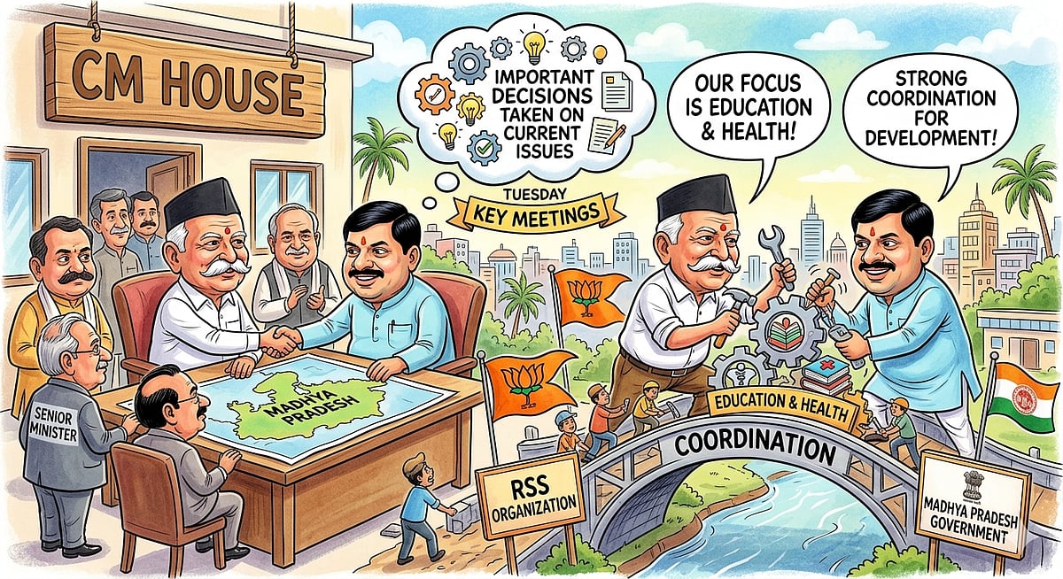The second meeting was attended by deputy chief ministers Jagdish Devda and Rajendra Shukla along with panchayat minister Prahlad Patel, urban development minister Kailash Vijayvargiya and PWD minister Rakesh Singh. The focus was on improving coordination between the government, Sangh and the BJP organisation.