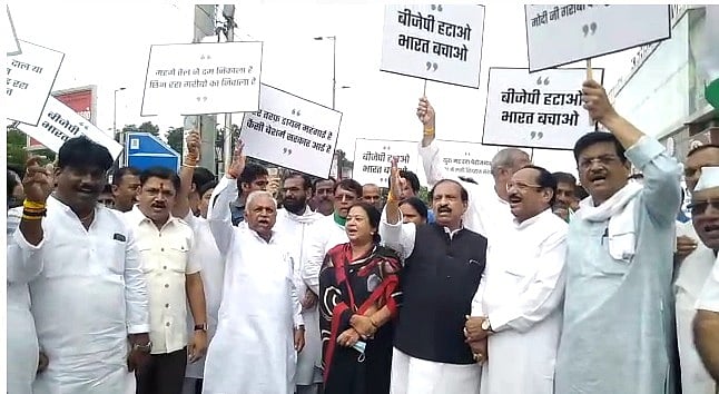 Bhopal (Madhya Pradesh): The Congress on Friday protested across Madhya Pradesh as part of its nationwide stir against the Union government over issues like price rise, hike in the Goods and Services Tax (GST) on essential items and unemployment.