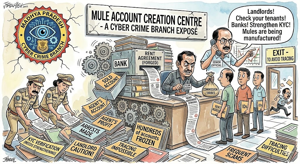 Bhopal (Madhya Pradesh): A major modus operandi of cyber fraud networks has come to light during investigations by the Cyber Crime Branch, revealing that fraudsters are using rent agreements to open mule bank accounts later used in scams.
