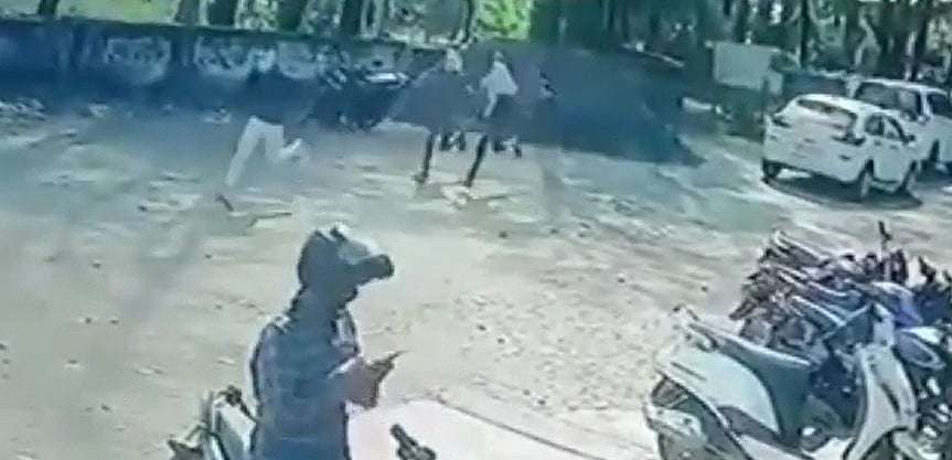 Jabalpur (Madhya Pradesh): A few masked assailants allegedly waylaid a school bus, attacked the driver and conductor with knives in Jabalpur on Thursday. The entire incident was captured on CCTV cameras. The footage shows the attackers, with faces covered in white cloth, fleeing the spot.