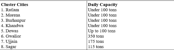 Around 15 smaller cities have been linked with these eight cluster cities to channel daily organic waste from households, restaurants and markets for processing. For instance, Harsud and Mundi are grouped under Khandwa district cluster.