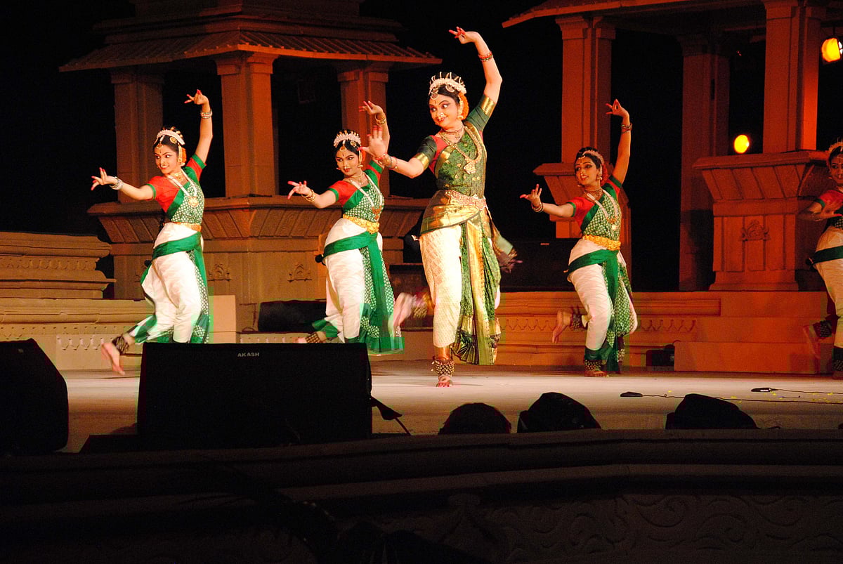 The Dance Festival features renowned Indian and international artists performing classical dances against the historic temple backdrop.