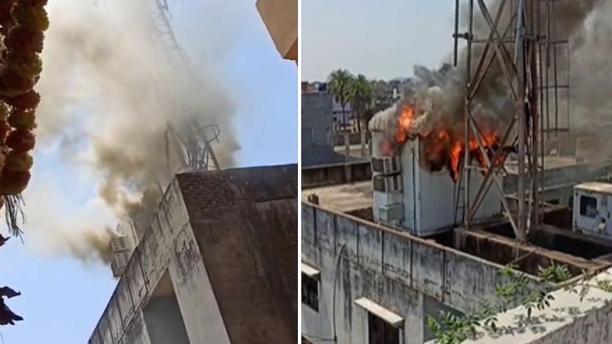 Guna (Madhya Pradesh): A fire broke out in a tower constructed atop a residential house in Madhya Pradesh's Guna on Friday. The blaze completely gutted the room housing the tower’s batteries and electrical equipment.
