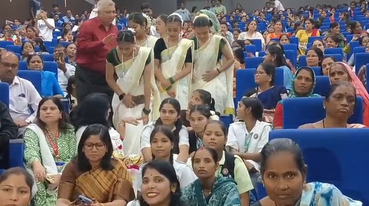 Gwalior (Madhya Pradesh): A heartwarming moment caught everyone’s attention during the celebration of Madhya Pradesh’s 70th Foundation Day in Gwalior, in which the district collector was seen sitting on the floor with school kids.