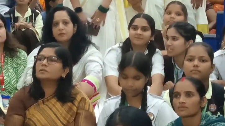 As soon as she noticed her, Gwalior Collector Ruchika Chauhan stepped down from the stage and sat with the children on the floor and enjoyed the entire program alongside them.