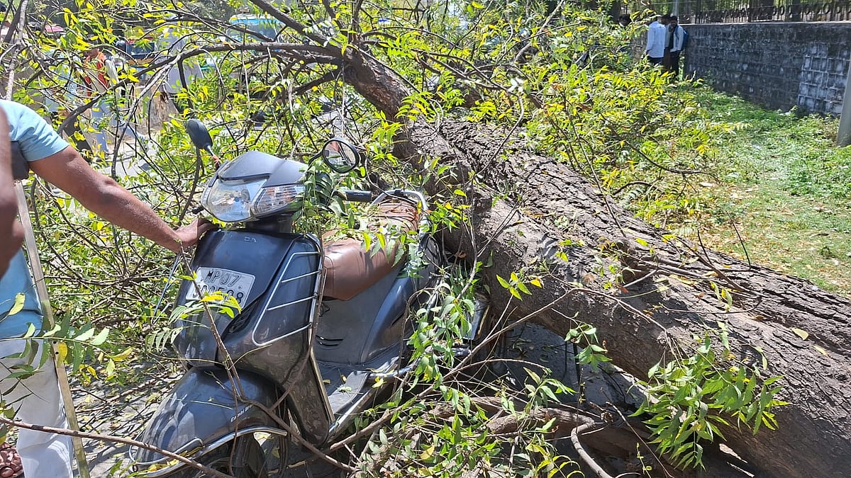 The incident occurred on Tuesday afternoon and caused panic in the area as pedestrians and two-wheeler riders were hit by the falling tree.