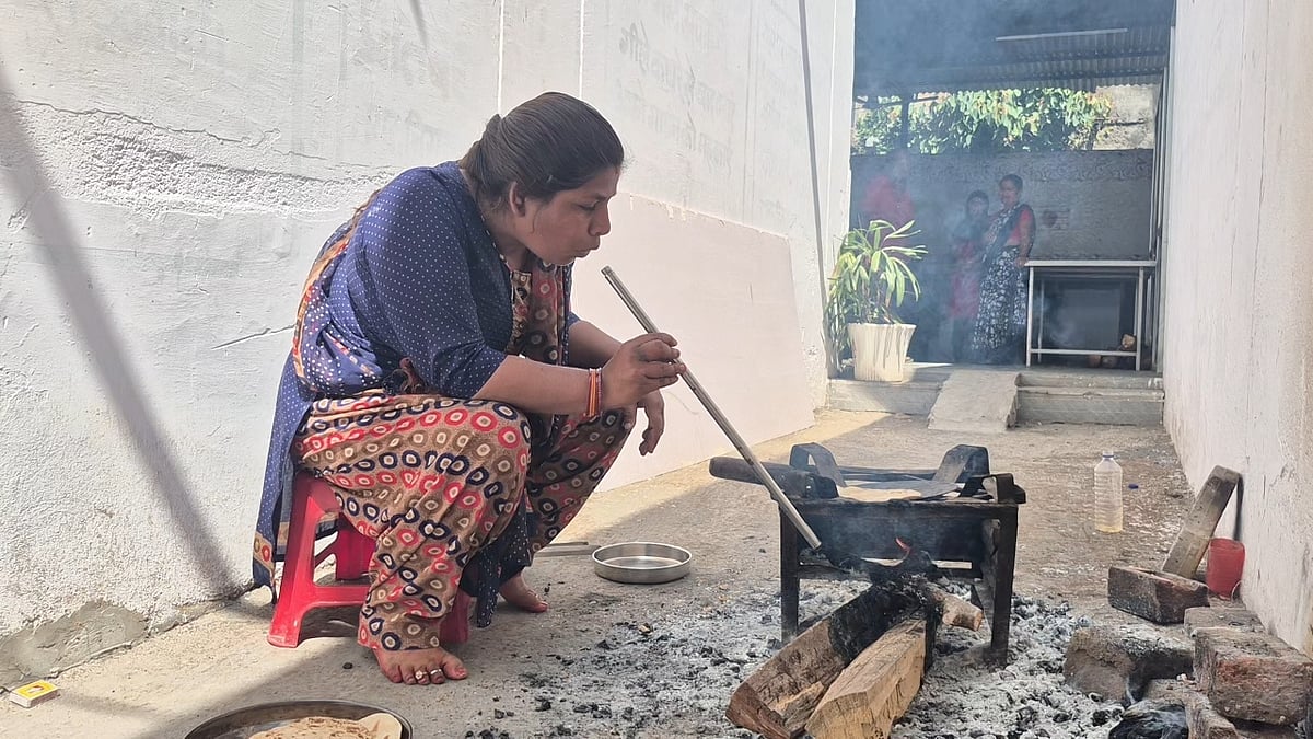 Consequently, the staff has been compelled to fall back on traditional wood-fired stoves. Manisha Kashyap, a cook who has worked at the facility for the past six years, explains that her work has now become far more arduous than before. While cooking on a gas stove was once a quick and efficient process, she now has to blow through a pipe to ignite the fire, causing her eyes to sting and burn from the billowing smoke.