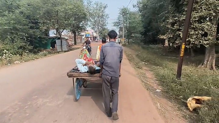 Sheopur (Madhya Pradesh): A seriously ill man from a poor family had to be taken to the hospital on a handcart after the ambulance failed to arrive in Madhya Pradesh’s Sheopur district, as reported on Friday.