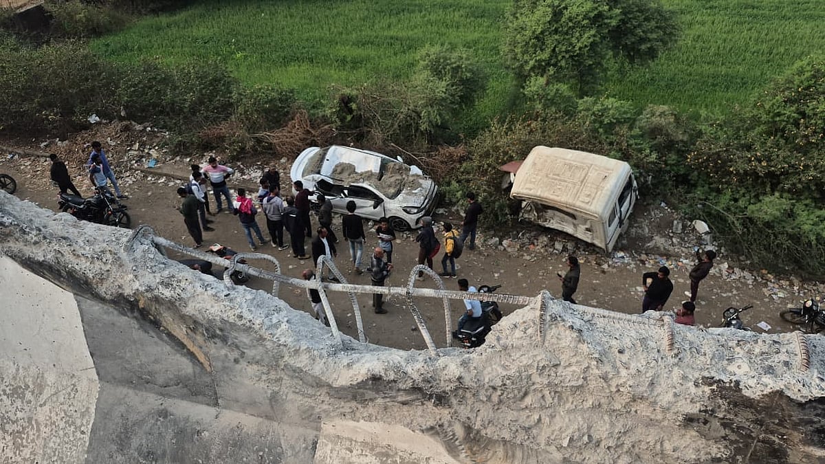 The incident was so tragic that a car and a two-wheeler passing on the service road were hit by the falling truck. A car parked under the bridge was also crushed beneath the Hyva.