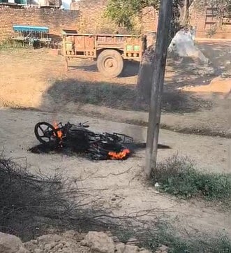 Police said a burnt motorcycle was found at the spot. An investigation is underway, and action will be taken against the accused soon.