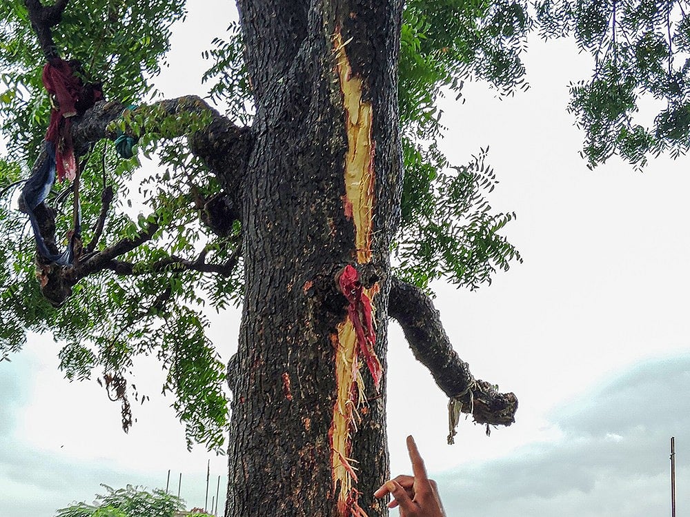 As the rain intensified, the children took refuge under a neem tree. Unfortunattely, lightning struck the tree, sending the children sprawling on the ground. The intensity of the strike was so great that the bark of the tree peeled off.