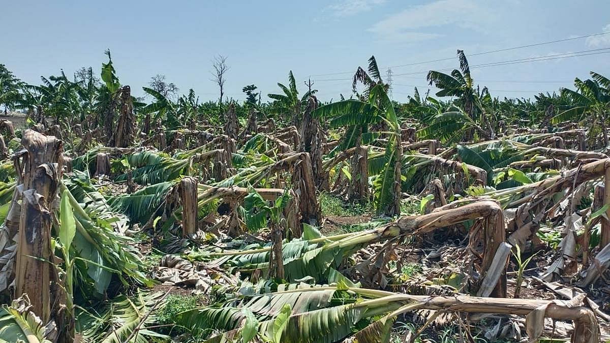 Bhopal (Madhya Pradesh): A storm damaged banana crops worth crores in Burhanpur district. The storm followed by heatwave caused damage at large scale in the entire region, especially to banana crops as plants fell down.